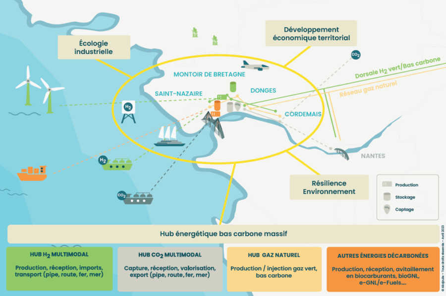 The consortium, which is made up of the Association of Loire Estuary Industrialists (bringing together Arcelormittal, Cargill, EDF, Elengy, Engie, Eqiom, TotalEnergies, and Yara), the Saint-Nazaire Agglomération, the Community of Communes Estuaire et Sillon, Nantes Saint-Nazaire Port, and the Atlantic France regional council, is proposing around thirty concrete actions to accelerate the decarbonisation and energy transition of this industrial region. Among these actions, hydrogen will be of great importance in the decarbonisation project; there will be opportunities for new infrastructures to be built, for manufacturers, and the ongoing development of hydrogen usage.