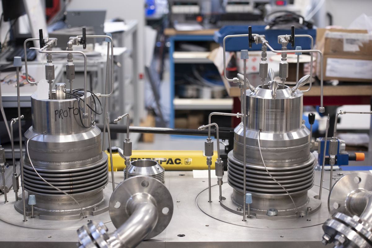 - Un liquéfacteur, adapté aussi bien pour l’hélium que pour l’hydrogène, permettant de caractériser les matériaux, capteurs, systèmes d’étanchéité et équipements en conditions cryogéniques pour l’hydrogène liquide. Différents projets sur les réservoirs ou les circuits de distribution très basse température sont en cours dans l’aéronautique, notamment menés par Airbus. Grâce à des cryostats, la température peut descendre jusqu’à 20 Kelvin, ce qui correspond à la température de l’hydrogène liquide.