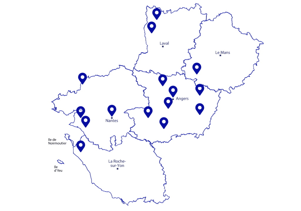 Angers Loire Métropole • Baugeois Vallée • Bocage Mayennais • Cholet Agglomération • L’Ernée • Loire Layon Aubance • Mauges Communauté • Nantes Métropole • Océan-Marais de Monts • Pays Fléchois et Pays Sabolien • Pornic Agglo Pays de Retz • Redon agglomération Bretagne Sud • Saumur Val de Loire Agglomération • Sud Estuaire • Vallées du Haut-Anjou