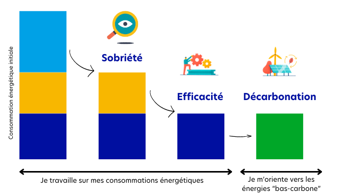 Vient en premier lieu la sobriété énergétique : la réduction volontaire et organisée des consommations d’énergie.